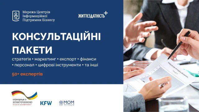 Мережа центрів інформаційної підтримки бізнесу за підтримки Міжнародної організації з міграції (IOM) надають можливість взяти участь у проєкті «БізнесВперед», спрямованому на розвиток мікро-, малого та середнього бізнесу через експертні консультації, практичний супровід, навчальні компоненти та підтримку операційних бізнес-завдань. Учасники можуть отримати пакетні консультації на 5 або 10 годин, виїзні зустрічі з експертами або поєднання форматів залежно від індивідуальних потреб бізнесу. Мета програми - посилити стійкість підприємців, розвинути їхні компетенції та допомогти впровадити інструменти для зростання.