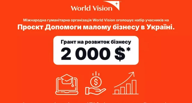 World Vision US та World Vision New Zealand у співпраці з Vision Fund Ukraine надають можливість взяти участь у проєкті допомоги малому бізнесу в Україні та отримати грант у розмірі $2 000. Мета проєкту - розвиток і масштабування малого бізнесу в Київській та Дніпропетровській областях через навчання, підготовку бізнес-плану та подальшу фінансову підтримку переможців. Після проходження навчання учасники готують бізнес-план, який оцінюється комісією для подальшого відбору отримувачів грантів. Отримання гранту передбачає створення щонайменше одного нового робочого місця згідно з поданим бізнес-планом. За бажанням учасники можуть додатково отримати кредит за умовами Vision Fund Ukraine.